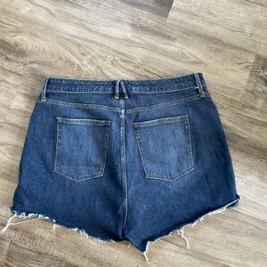 GOOD AMERICAN The Cut-Off Shorts in Blue 464 Wash Raw Hem High Waist 16