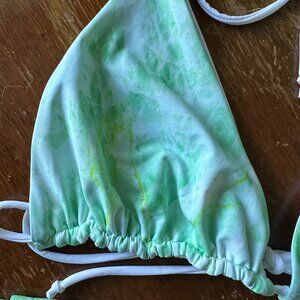 GOOD AMERICAN Tiny Ties Bikini Set | Green & White Marble | 5 top 3 bottom