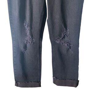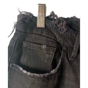 GOOD AMERICAN Washed Black Distressed Hi-Rise Straight Leg Raw Hem Cuff Jean 28