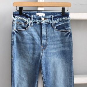 GOOD AMERICAN Womens Blue Zippered Frayed Hem High Waist Distress Jeans Size 27