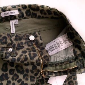 GOOD AMERICAN Good Waist Crop Skinny Jeans! Size 25. Beautiful sage green high rise skinny jeans with brown and black leopard pattern. New with tag, but not price tag.