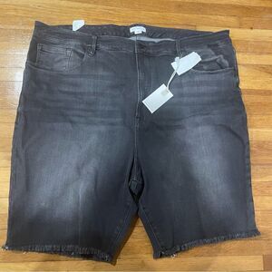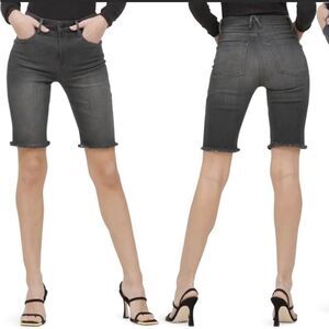GOOD AMERICAN Good Raw Hem Bermuda High Rise Denim Shorts in Vintage Black Wash