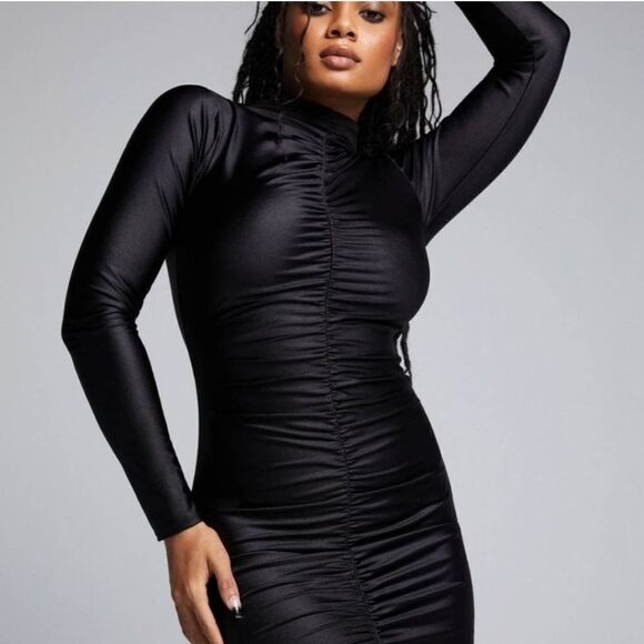 GOOD American High Shine Compression Ruched Mini Dress Sz 2 or M