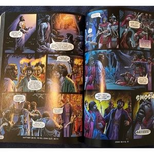 Good & Evil Revised Edition 2016, the ultimate comic book action Bible. Perfect for any young adult reader. No water damage, no tears on any of the pages. Illustrated by Danny Bulanad, who illustrated lots of the Marvel Comics.