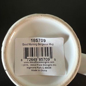 Good Morning Gorgeous Mug / ABOUT FACE DESIGNS ~ Metallic Gold Lettering ~ New with Tags