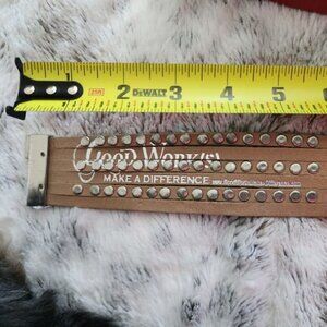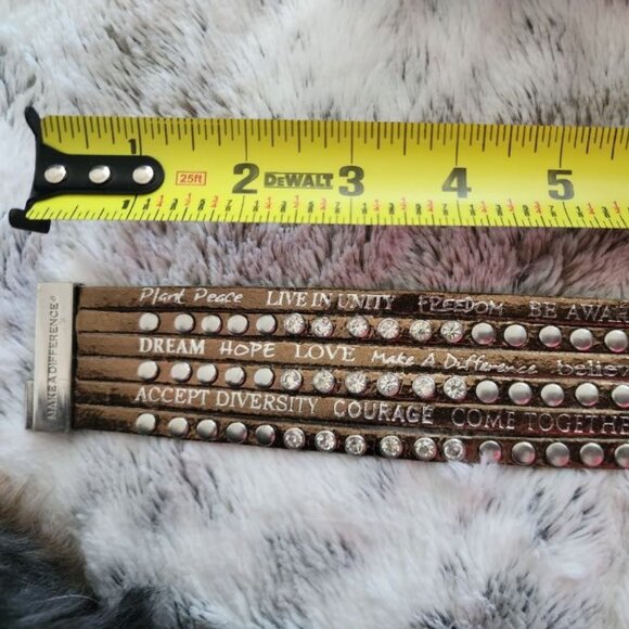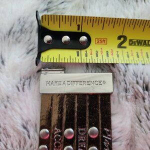 GOOD WORKS BRACELET. ENCOURAGING SENTIMENTS. BRONZE. LEATHER. 7.5"