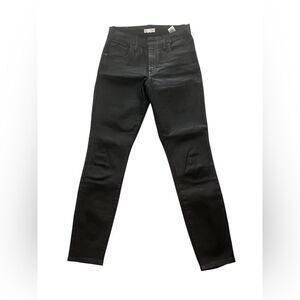 Good American 'Good Classic' Black Coated Ankle Straight Leg Jeans. high-waist, contoured waistband, 5 pocket set up zip fly.