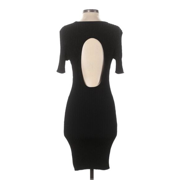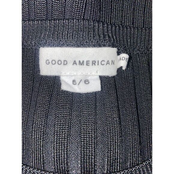 GOOD AMERICAN SIZE 5/6 XXL Black Ribbed Short Sleeve BodyCon Cut Out Back Dress