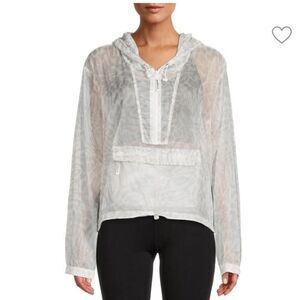 Lightweight, this windbreaker is highlighted with a semi-sheer leopard print all over.