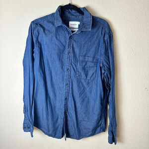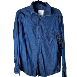 GOODFELLOW & CO. Blue Grey Stripe Button Up Button Down Long Sleeve Shirt Size L
