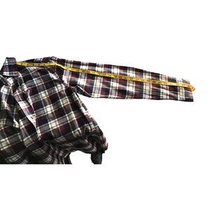 This GOODFELLOW & CO men's flannel shirt in size medium combines style and comfort. The wine, white, and blue checked pattern is made from 100% cotton, featuring a long-sleeve, button-down design.