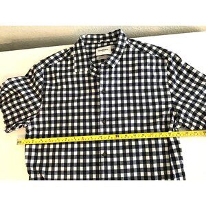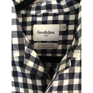 GOODIELLOW men's navy/white short sleeve button down shirt is a medium sized, standard style, cotton shirt, perfect for casual or formal occasions.