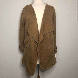 Goodnight Macaroon open marl knit cardigan. Beautiful brown with faux leather trim.