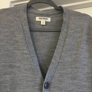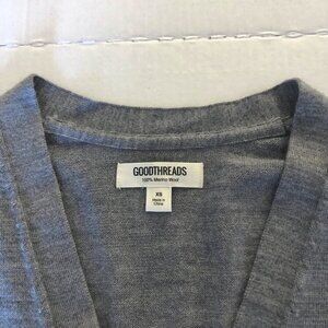 GOODTHREADS 100% Merino Wool Cardigan Sweater Mens XS Gray V-Neck Front Pockets