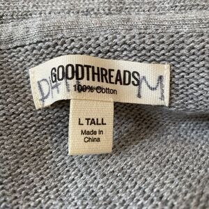 GOODTHREADS Men L Tall Cardigan Knit 100% Cotton Button Sweater Shawl Collar