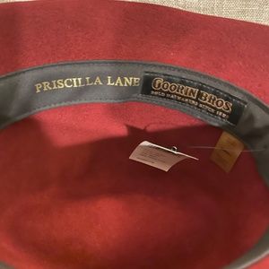 NWT Women's "PRISCILLA LANE" by Goorin Bros 100% wool brick red/maroon colored fedora. Kept stored. Great shape. Great condition. Size Small. super cute & stylish!