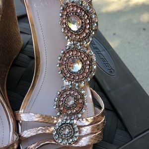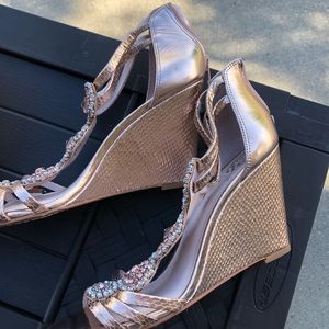 Rose gold and tons of bling! Pictures do not shoe how gorgeous the shoe is!!