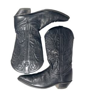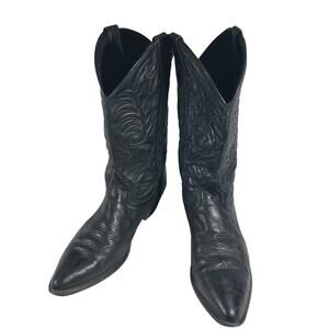 I'm breaking my "names only rule" for these fabulously exceptional boots in black genuine leather! Fancy stitched, they feature a pointy toe, western cowboy style, and are slip-on easy! Mid calf, 1.75" heel, 10.5" shaft height, 23" circumference at top! Size 8M, Excellent! Superb EUC Condition! **ABSOLUTELY GUARANTEED CONDITION: EUC MINTY-EXCELLENT TO LIKE-NEW, by Lily @HauteClub!***