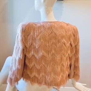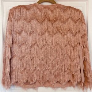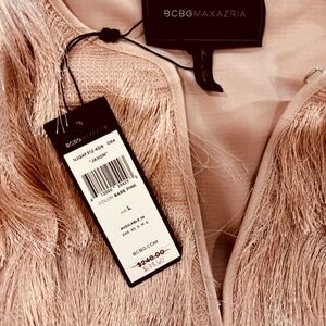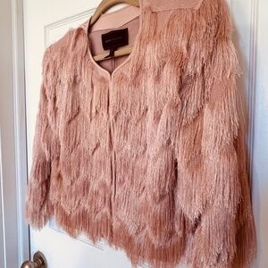 GORGEOUS Blush Pink fringe jacket coat size L ( 10 12) BCBGMAxAzria NEW NWT MINT