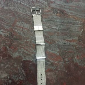 This bracelet glimmers in the light with its beautiful, shiny, and pink rhinestones. It is unique in the way that it clasps together like a watch.