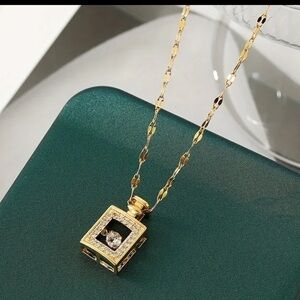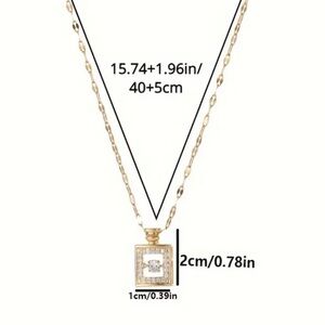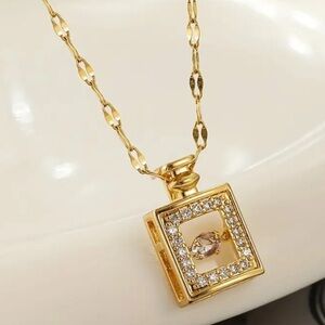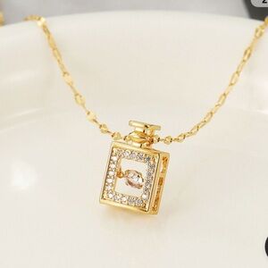Suspended from a dainty and shimmering gold chain, this necklace is the perfect accessory to add a touch of sophisticated glamour to any ensemble. Whether you're dressing up for a special occasion or adding a subtle sparkle to your everyday look, this "Diamond Filled Perfume Bottle Necklace" is sure to turn heads and become a cherished piece in your jewelry collection. It makes a thoughtful and stylish gift for anyone who appreciates timeless elegance and a hint of sparkle.