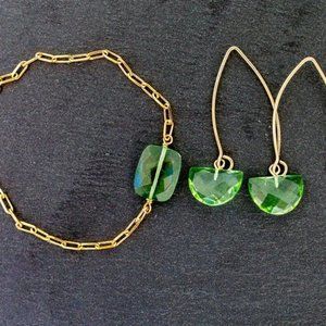 GORGEOUS Green Amethyst Gemstone Bracelet Gold Paperclip Chain Statement Jewelry