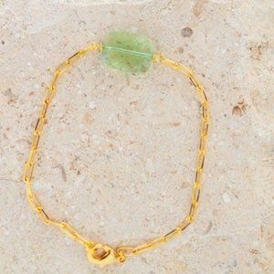 Unique Light Green Amethyst Hydro gemstone Bracelet - Beautiful color and sparkle. Gemstone is 12x15mm faceted. Chain is 18K gold plated Paperclip chain 5mm.