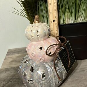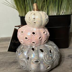 GORGEOUS! LUSTROUS LIGHT UP CERAMIC PUMPKIN PINK, SILVER AND CREAM