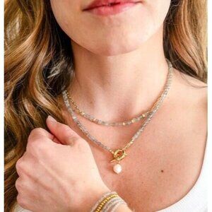 GORGEOUS Necklace Labradorite Beaded Necklace Gold Toggle Clasp Removable Pearl
