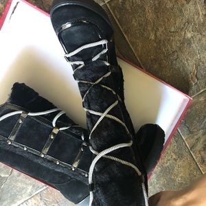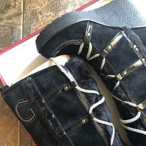 New, never been worn Guess boots. Lovely tie design and fur trimming. Wedge heel ✨