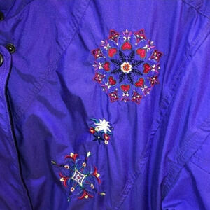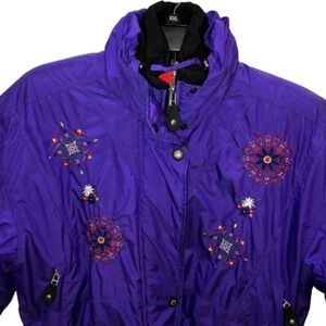 Stunning purple vintage Obermeyer Winter Jacket with matching mittens to keep you warm this sparkly snowy season. Great for skiing but also great for looking stylish while staying warm. Has pockets galore, pretty embroidery, and a hidden hood for those blustery days❄️. Stay warm, look good, order it today 🙂❤️👍.