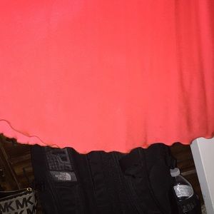 worn once! slit on left side. tan mesh part is see through dress is coral color! one of my favorite dresses i’ve worn for sure. very unique some gems are lose and the trail of the skirt on bottom looks slightly worn nothing you couldn’t hem off! size 2! only alterations i got were to make the slit lower down my leg! cups built in!