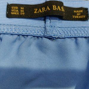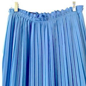 Absolutely beautiful statement skirt from Zara! One of those timeless pieces that are easy to pair with anything and look amazing. Comes in gorgeous Periwinlw Blue that looks amazing in any light (100% Polyester). Features sleek pleated design, high-rise silhouette, stretchy elastic waistband with ruching detail, solid mini underskirt, and sexy slits on both sides. Made from great quality semi-sheer chiffon ( 100% Polyester). Very feminine and flattering has great flow and movement and looks amazing from any angle. Surprisingly versatile, It will look equally fabulous with an edgy crop top as it is with a blouse or blazer. Size M. Approx measurements: waist 14 โ, Underskirt 15.5", length 39โ. NWOT from a clean, smoke-free home.
