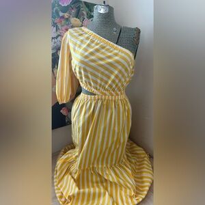 GORGEOUS RACHEL ROY ASYMMETRICAL, 1 SHOULDER, YELLOW/WHITE STRIPE. SHOW STOPPER