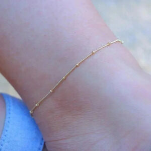 💛GORGEOUS ROUNDED BEADS ANKLET ESSENTIAL CHAIN SOLID GOLD BRACELET, ELDM22337