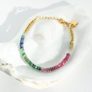 GORGEOUS Rainbow SAPPHIRE Beaded Bracelet Waterproof Gold Non-Tarnish Bracelet