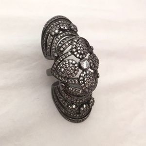 GORGEOUS SILVER GUNMETAL CZ COVERED JOINTED FULL FINGER SHIELD KNUCKLE RING NWT