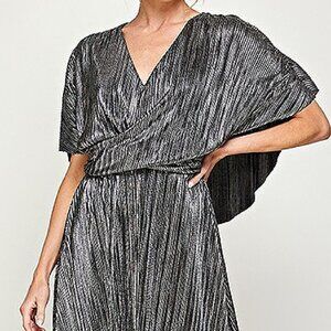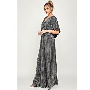 GORGEOUS Silver Crinkle Metallic Threaded Cape Back Maxi Dress S+M+L NEW