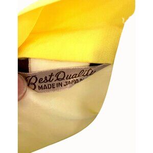 GORGEOUS VINTAGE BRIGHT YELLOW FLORAL EMBROIDERED KIMONO ROBE W/ BELT FROM JAPAN