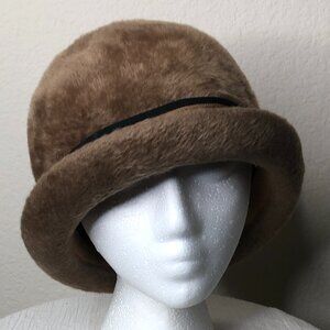 - Soft colored, soft to the touch, brown felt faux fur roll brim