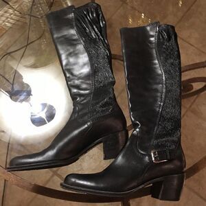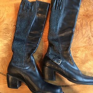 Gorgeous Back Pliner Tall Boots! These are just gorgeous! The upper back is 6” across with 7” across stretch. Pattern upper back of one is a bit different than the other. GUC only worn a few times. Make sure upper calf is a good fit for you! Love these as they are keep forever boots. Final sale price will be based on availability of these (rarity) and reasonable offer! 3” heel. As-is, no returns due to closet clearance & sale. Please ask any questions & I will try to answer!