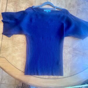 Gorgeous Fit Sweater Top blouse to dress up or down. Wear camisole under to conceal small opening. This is a really gorgeous everyday nice piece too good to just let go. Fits size M-L like a dream. Ribbed knitting very figure flattering!