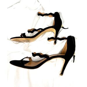 GORGEOUS J. Crew Black Suede Leather Strappy Heels w/ Zip Back Sz 10 EUC