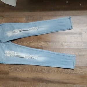 GORGOUS LUXE BEDAZZELDED&TRASHED/RIPPED UP TORN UP DESTROYED JEANS SZ 27