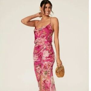 π Va-va-voom! Romantic florals bloom on this stunning, silky open-back dress by Sau Lee. Whether itβs a summer wedding, cocktail party, or tropical getaway, this dress is a showstopper! One of the most beautiful pieces in my closet.