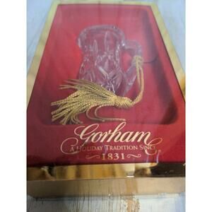 GORHAM LADY ANNE MINI CRYSTAL PITCHER ORNAMENT WITH GOLD TASSEL NEW IN BOX.