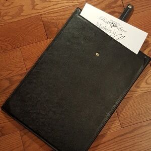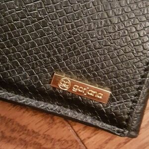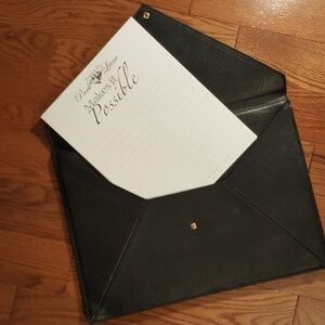 Boss lady bag. Perfect for that business boss. Black with gold. Two openings large enough for papers and pads. Front and back shown on photos.