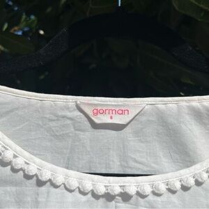 GORMAN white scoop neck ruffle tiered short sleeve pom trim mini dress
