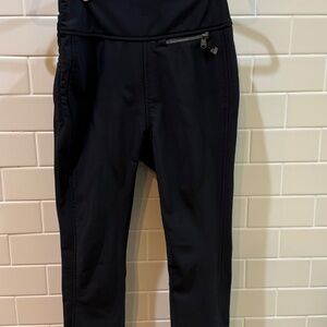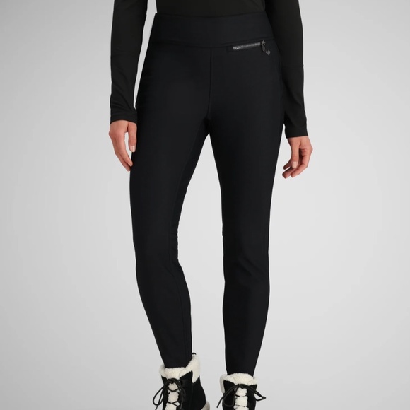 The pants in the image are the Obermeyer Jinks ITB Softshell Pant. They are a popular women's ski pant designed with a retro "in-the-boot" style. They ae a fashion forward ski lodge look in a retro style. Design: These pants feature a sleek, form-fitting silhouette with stretch-mesh stirrups designed to be worn inside ski or casual boots. Material: They are made from a four-way stretch fabric (74% nylon, 26% elastane) and are fleece-lined for warmth and comfort. Weather Resistance: The pants utilize HydroBlock® Excel softshell fabric, offering an 8k/10k waterproof and breathable rating. Pockets & Closure: They have a side opening with a snap closure and a convenient zippered pass pocket. #ski #Obermeyer #winter sports #snowboarding #Aspen