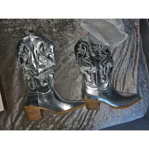 GOSERCE Cowboy Boots for Women - Metallic Mid Calf 2.5" sz. 7